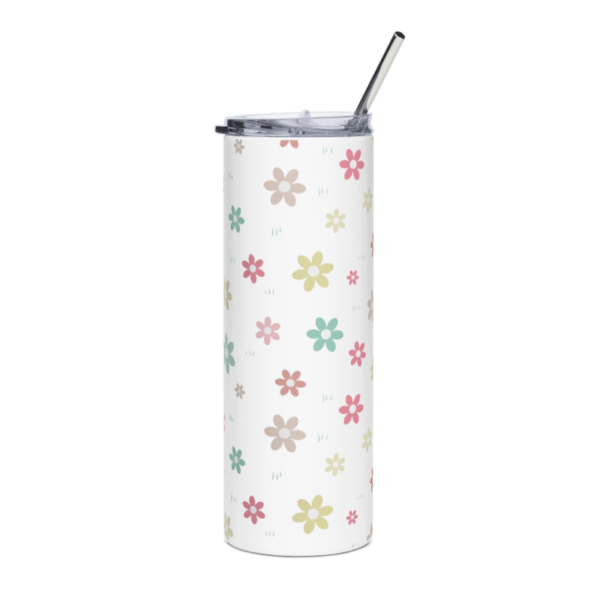Thermo-drinkbeker met deksel en rietje – bloemetjes